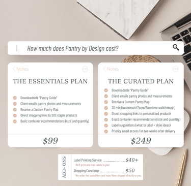 For the organizer-curious, the DIY dreamers, and the stylish doers — we create custom pantry plans so you can organize your space beautifully, without the full-service price. With options that work for your DIY skills and your budget.